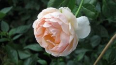 とうとう開花。遅咲きのバラです。地上約80センチ、冬剪定位置からは70センチの高さで咲いています。テニスボール大の大輪。しっかりと上を向いて咲くので嗅ぎやすい。さっぱりとしたフルーツ香の強香。我が家のバラの中でもっとも強香です。