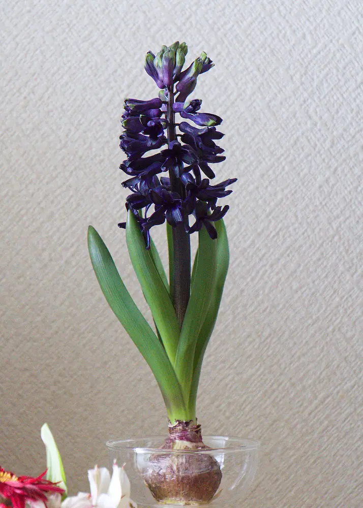 土に植えて、咲きだした球根を掘り出して根を洗って、ガラスなどの容器において鑑賞するのがいろいろはかどる感じ。がします。