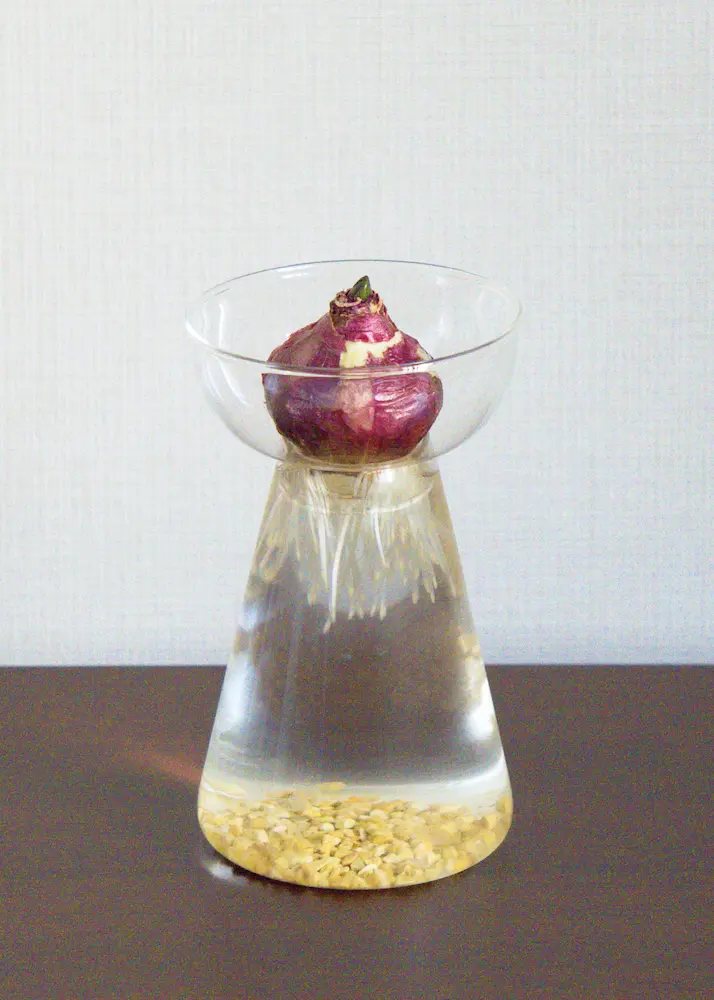 土に植えて、咲きだした球根を掘り出して根を洗って、ガラスなどの容器において鑑賞するのがいろいろはかどる感じ。がします。