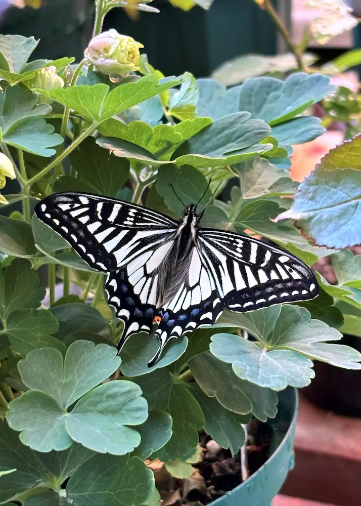 2025年の夏も、アゲハチョウが卵を産んでいってくれました。羽化するまでを見届けます。